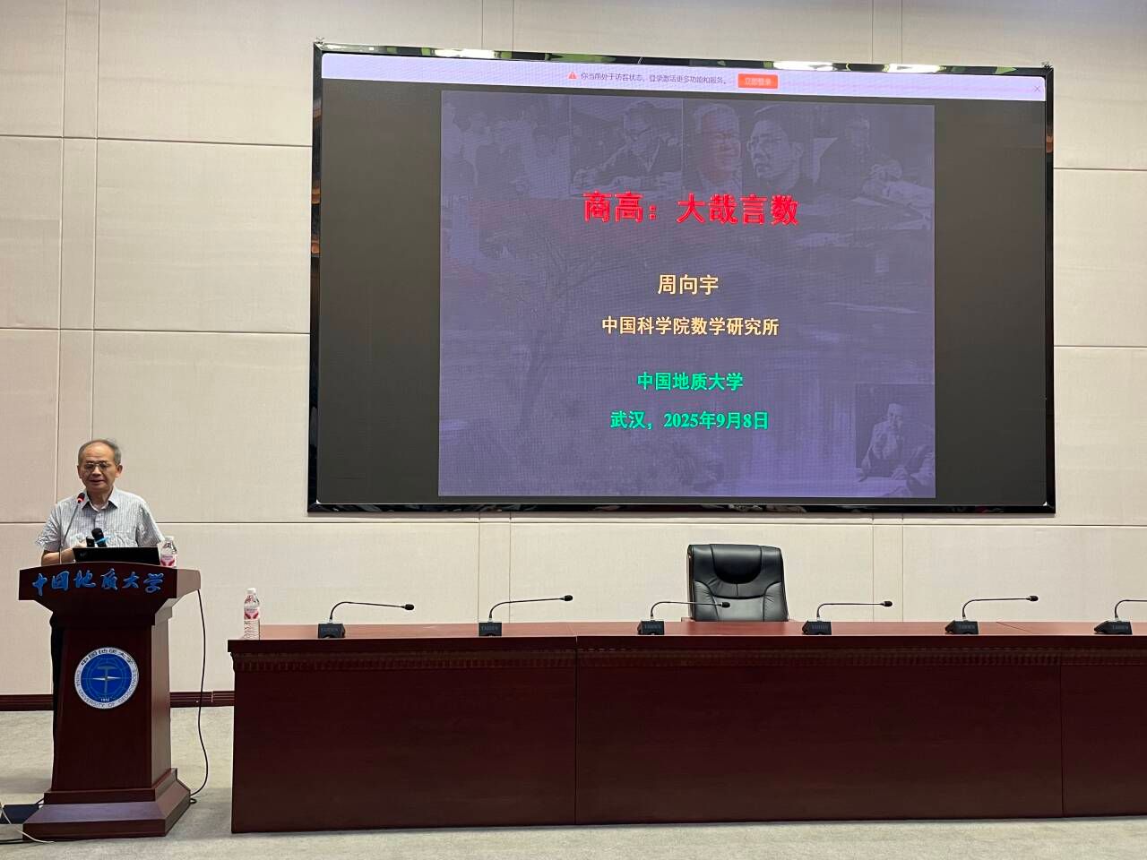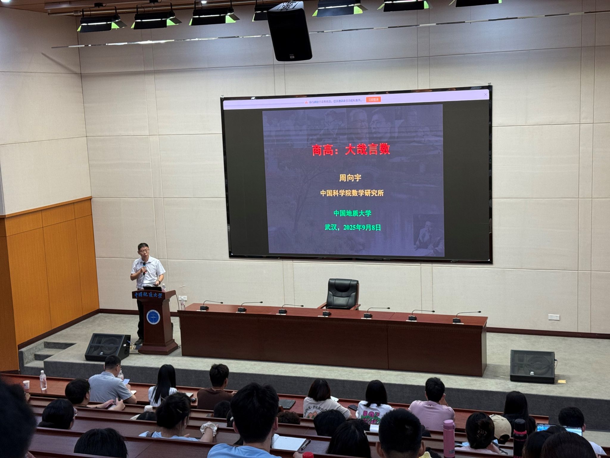 2025年9月8日,应嗨皮漫画 院长魏周超教授的邀请,中国科学院院士、发展中国家科学院院士、中国科学院数学与系统科学研究院周向宇研究员做客嗨皮漫画 (武汉)“名家论坛”,在南望山校区东区教学综合楼A0116会议室为嗨皮漫画 师生带来了一场题为“商高——大哉言数”的精彩学术报告。本次报告会由嗨皮漫画 魏周超教授主持。2025级研究生、本科生百余人参加此次报告。