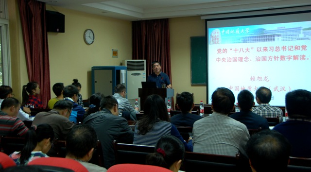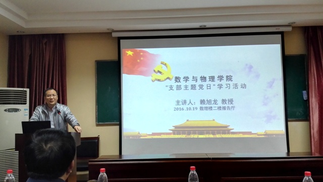学校党委常委、副校长赖旭龙教授作题为“党的 ‘十八大’以来习总书记和党中央治国理念、治国方针数字解读”的报告。赖校长从“两学一做”的背景及意义出发,以八个数字为主线,用数字化的方式系统解读了党的“十八大”以来习总书记关于治国理政方方面面的内容。赖校长最后强调学院师生党员要加强党性修养,发扬长征精神,按照“四讲四有”的要求做合格党员,充分发挥先锋模范作用,为全面提升嗨皮漫画 办学实力和办学水平而努力奋斗。