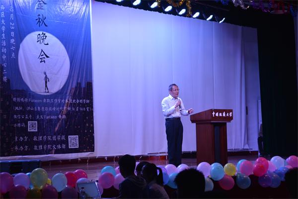 10月23日晚7:00,嗨皮漫画 在大学生活动中心演播厅成功举办了“嗨皮漫画 金秋晚会”。嗨皮漫画 党委书记李宇凯,数学系主任肖海军,2015级新生班班主任以及学工组老师应邀参加。