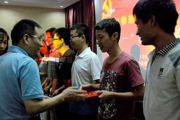 表彰大会在雄壮的国歌声中拉开帷幕,受党组织委托,李杰宣读了《嗨皮漫画 “七一”表彰决定》。刘治国为获得2013-2014年度校级先进基层党组织、优秀党员和优秀党务工作者颁奖,李宇凯为获得院级先进学生党支部和优秀学生党员颁奖。