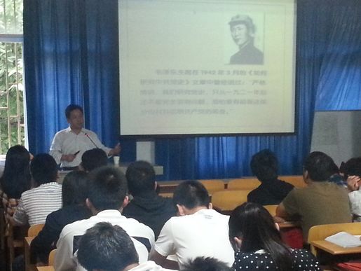 在基础楼212会议室举行“党员教育月”活动第一讲,马克思主义学院卢文忠教授应邀担任主讲嘉宾。院学工组朱佳斯老师、全体学生党员参加了此次活动。