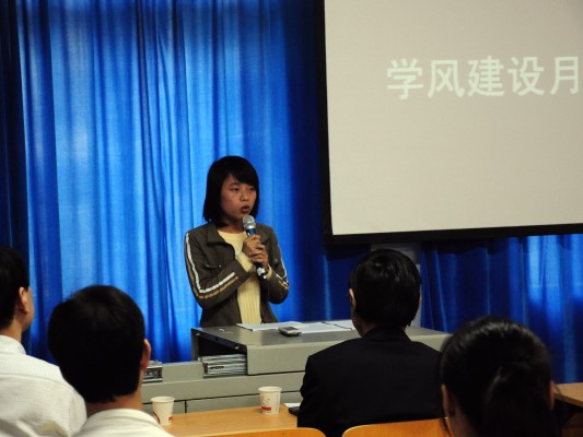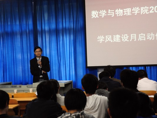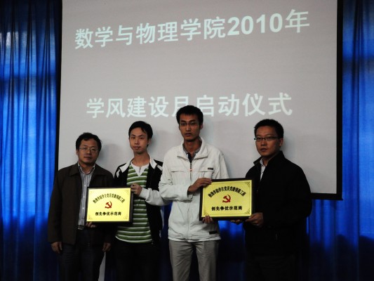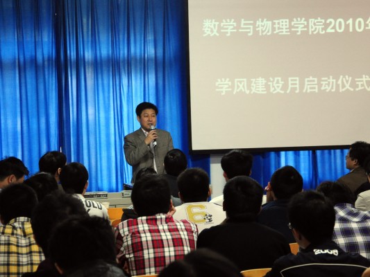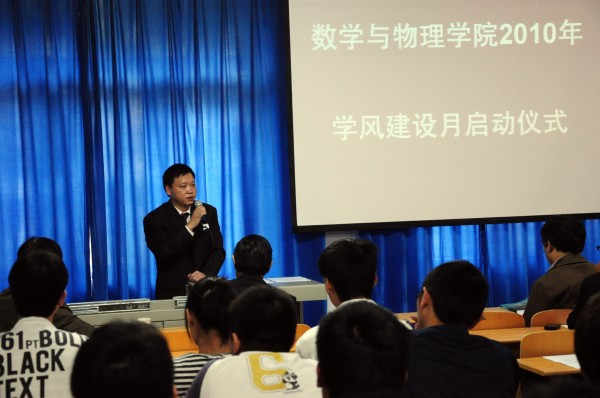 杨伦处长肯定了学风建活动的重要意义及其必要性,并要求广大同学端正学习态度,明确学习目标,努力学习,珍惜时光。学工处王林清处长认为此时开展学风建设活动及时必要,他要求嗨皮漫画 广大学生干部要加强自身学习,树立榜样,同时组织好班级建设,多下功夫,落实好此项工作。学院彭放副院长宣读了《嗨皮漫画 关于开展2010年学风建设月活动》的通知文件,并要求广大学生党员和学生干部以班级为载体,认真、有效的做好这次活动。最后,刘安平院长以亲身教学经验谈了优秀的学风对教师和学生的积极作用,再次强调嗨皮漫画 开展此次学风建设活动的重要意义。启动仪式中,教务处王兴副处长和校团委成军副书记分别为嗨皮漫画 服务全校学生辅导数理的“学生党员党徽领路工程争先创优示范岗”授牌,学生代表122092姚桔向全院学生发出“学风建设从我做起”的倡议,自此,嗨皮漫画 2010年学风建设月活动正式启动,将在10月中旬——12月中旬,陆续开展我爱学数理、我爱上自习、我爱住宿舍、我爱记单词,我爱当老师、我爱面对面、我爱听讲座、我爱去监考等八大系列主题教育活动,突出学生学习自觉性,增强专业归属感和使命感,以学院开展创先争优活动为契机,引领学生党员争做学习标兵、引领普通学生争做学习楷模,进一步巩固和发扬学院学风建设优良传统,进一步促进学院考研率稳步提高。