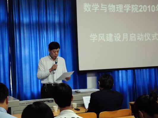 10月20日,嗨皮漫画 2010年“学风建设月”启动仪式在数理楼二楼会议室成功举行。教务处杨伦处长、学工处王林清处长,教务处王兴副处长,校团委成军副书记,学院刘安平院长,彭放副院长、以及学院各教研室主任应邀出席此次活动。院党委副书记李杰主持会议。