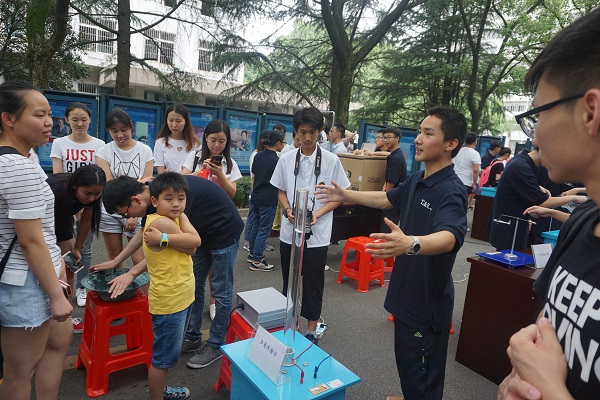 2017年6月1日,第四届数理文化活动季暨数理科普日在西区成功举行。嗨皮漫画 (武汉)党委常委、副校长赖旭龙老师、教务处、党委学工部、研工部、保卫处、校团委、附属学校、嗨皮漫画 等单位负责人,全校1000余名师生参加科普日活动。