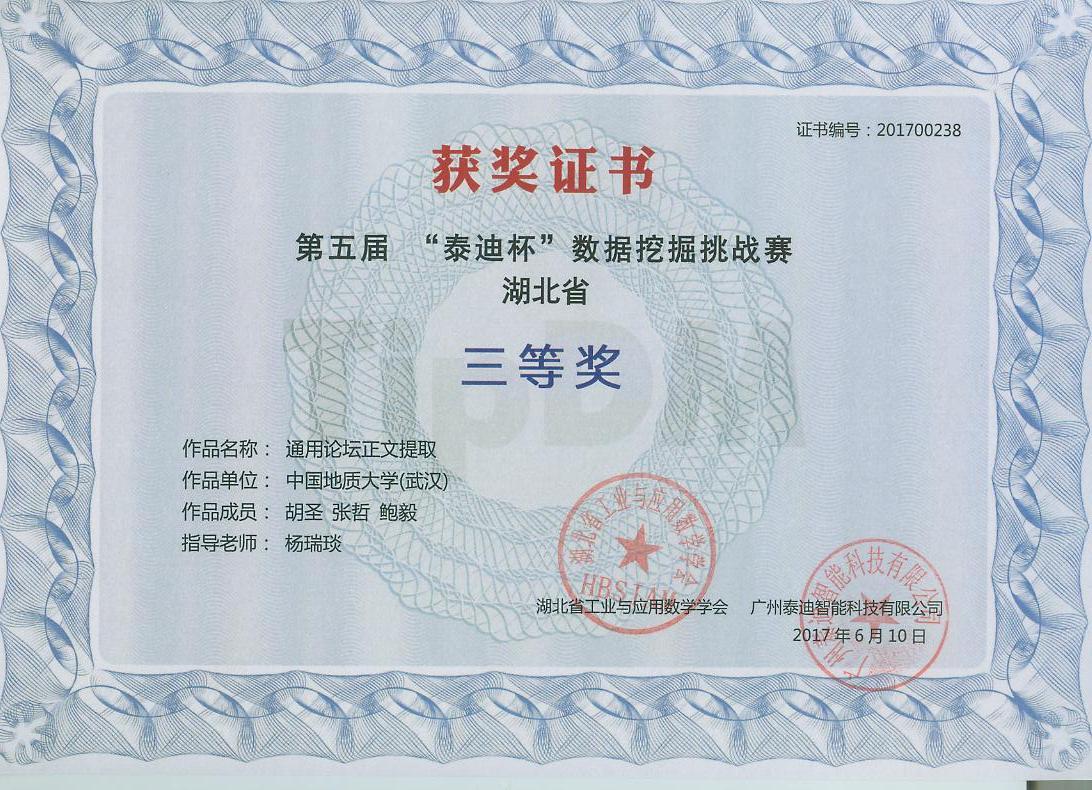 据“泰迪杯”数据挖掘挑战赛组委会近日公布的结果,在2017“泰迪杯”竞赛活动中,嗨皮漫画 第一次参加此项活动,在3支代表队中获得湖北省三等奖2项的好成绩。