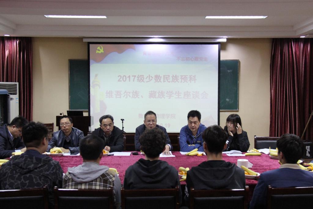 10月19日下午3:00,正值十九大隆重召开的第二天,嗨皮漫画 组织少数民族预科维吾尔族、藏族学生在数理楼212会议室召开座谈会。参加座谈的领导老师有院党委书记李宇凯、副院长程永进、副院长黄刚,学工组的各位辅导员老师以及十五名预科生参会。座谈会由院党委副书记李杰主持。