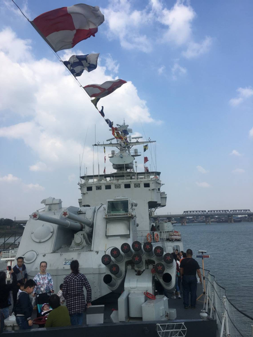 南昌舰主题公园是本次红色之行的第三站。参观了中国海军163导弹驱逐舰-第二代南昌号,这艘驱逐舰于1977年12月28日广州造船厂开工制造,1979年12月22日下水,1982年11月15日服役于南海舰队,2004年调往北海舰队,2016年退役降旗。南昌舰见证了中国海军从小到大、由弱变强、不断发展壮大的辉煌历史。南昌舰曾开启南海曾母暗沙“第一锚”,参加“3•14”中越海战,参与中俄海军联演等。南昌舰的赫赫战功,为保卫祖国的万里海疆,留下了无数闪光的航迹,做出了不可磨灭的贡献。同时,也让我们初步了解了海军军事科学知识,拓展了视野,增强了国防意识。