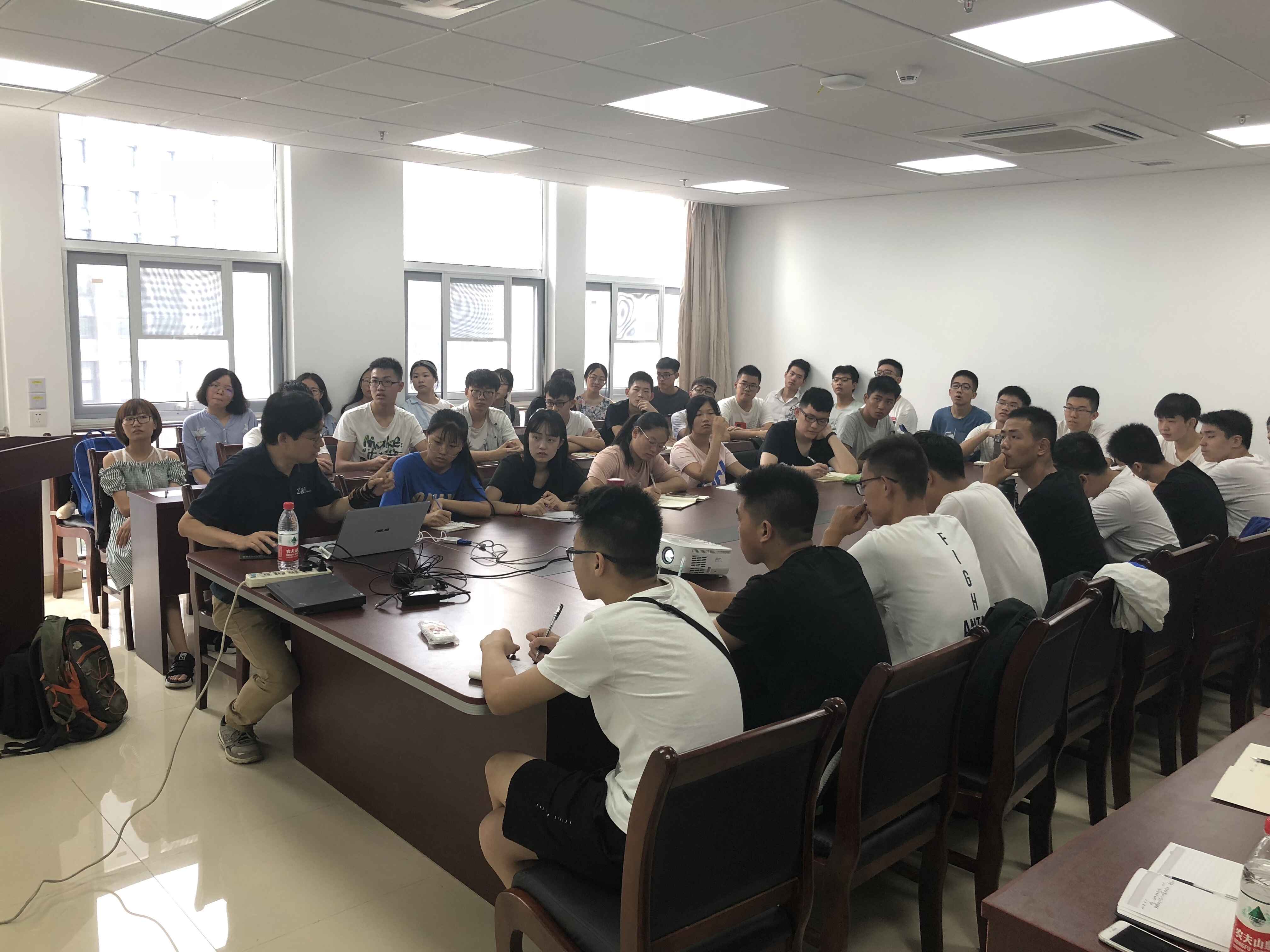 会议由新生辅导员托乎尼牙孜主持。数学与应用数学系主任罗文强教授、信息与计算科学系主任李星教授、物理系主任陈刚教授先后对各专业的办学历程、知识体系、特色优势、行业背景和现状、前沿发展、未来就业岗位、保研率等做了详细的介绍,并回答了新生提出的相关问题。