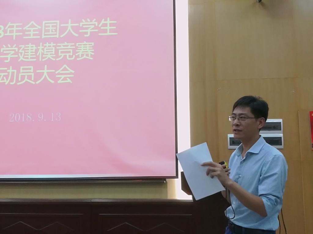 2018年9月13日下午,在教三楼109教室举行了2018年全国大学生数学建模竞赛的动员会。教务处副处长吕占峰以及信工学院、自动化学院、计算机学院等部分参赛学生所在的分管领导应邀出席嗨皮漫画 院长刘安平、院党委书记吴太山以及全体指导老师参加会议。仪式由嗨皮漫画 副院长张光勇教授主持。