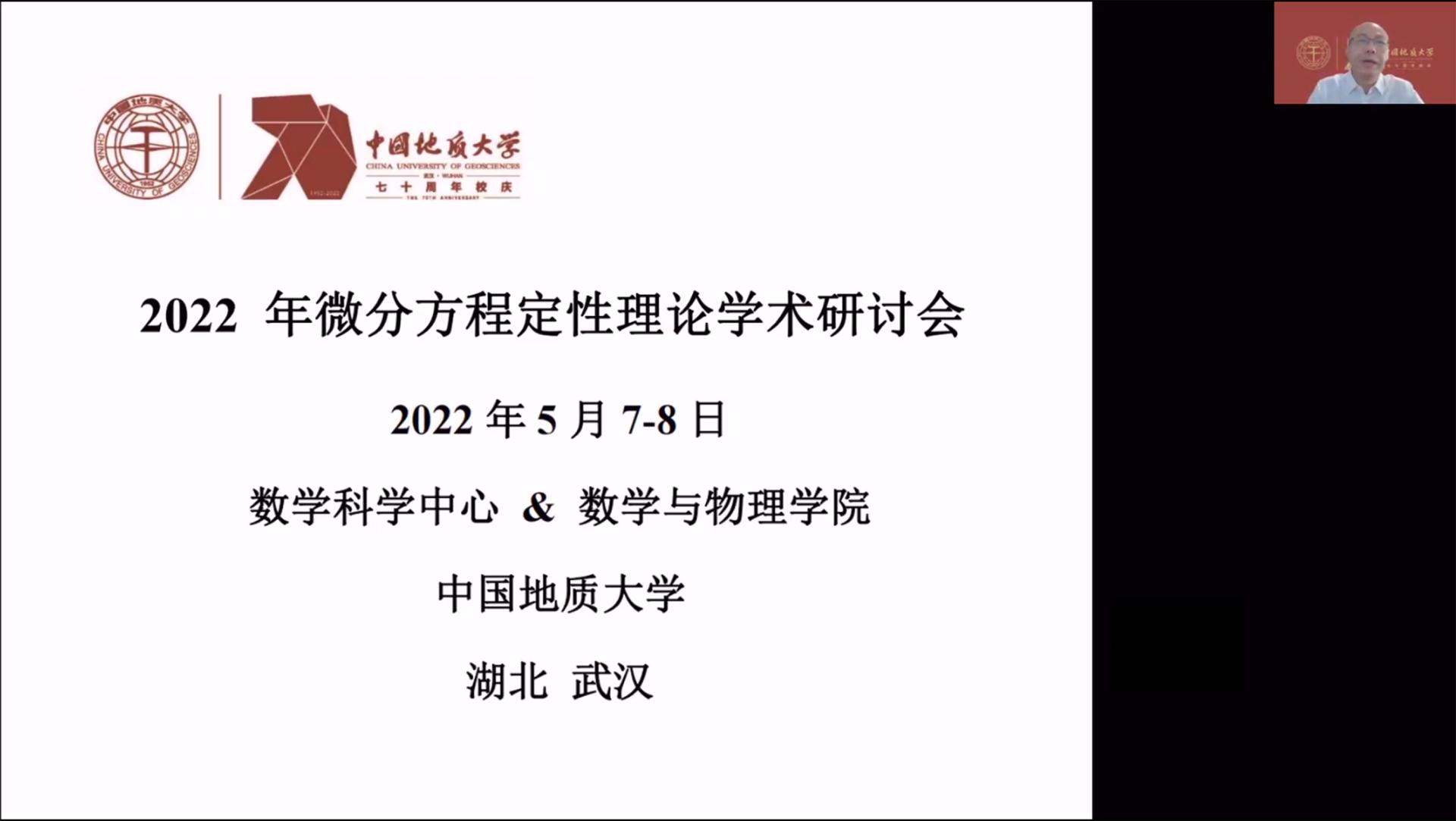 2022年5月7-8日,嗨皮漫画 通过腾讯会议平台举办了“微分方程定性理论”网络在线学术会议。此次研讨会是嗨皮漫画 (武汉)70周年校庆的系列学术活动之一,以更好地交流微分方程定性理论及相关领域的最新研究成果和学术发展动态为主旨,为国内外同行专家之间的学术交流与合作提供平台。开幕式由嗨皮漫画 院长郭上江教授主持,嗨皮漫画 (武汉)副校长刘勇胜教授致辞。