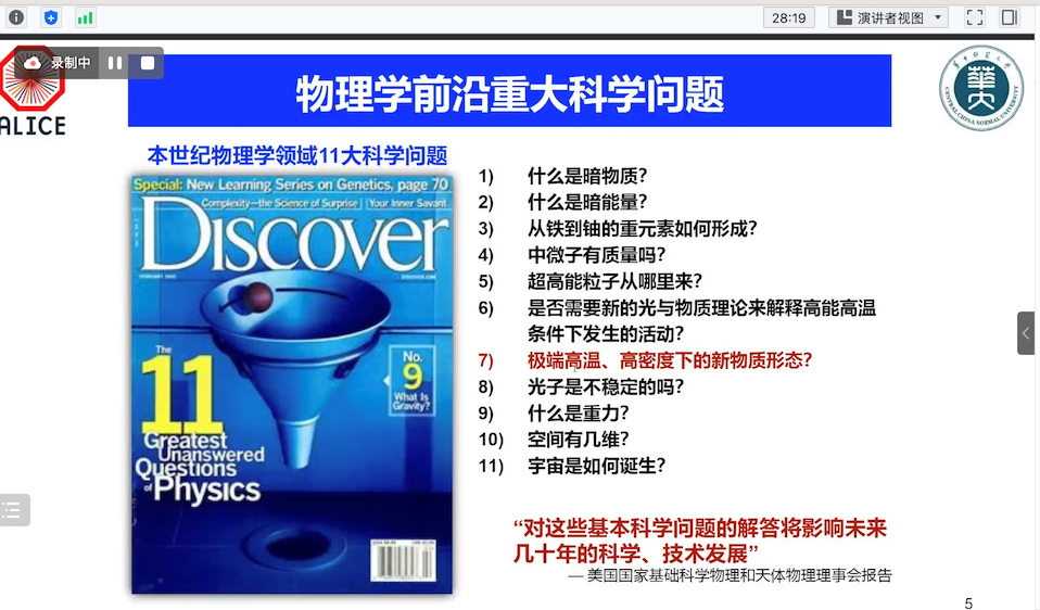 为迎接嗨皮漫画 七十周年校庆,11月29日上午嗨皮漫画 通过线上方式邀请华中师范大学周代翠教授,为嗨皮漫画 物理系师生做了题为《欧洲CERN大型重离子对撞实验最新进展及展望》的学术报告。该报告由嗨皮漫画 科学技术发展院、嗨皮漫画 联合举办,彭忻烨副教授主持,本院师生共计50余人参加。