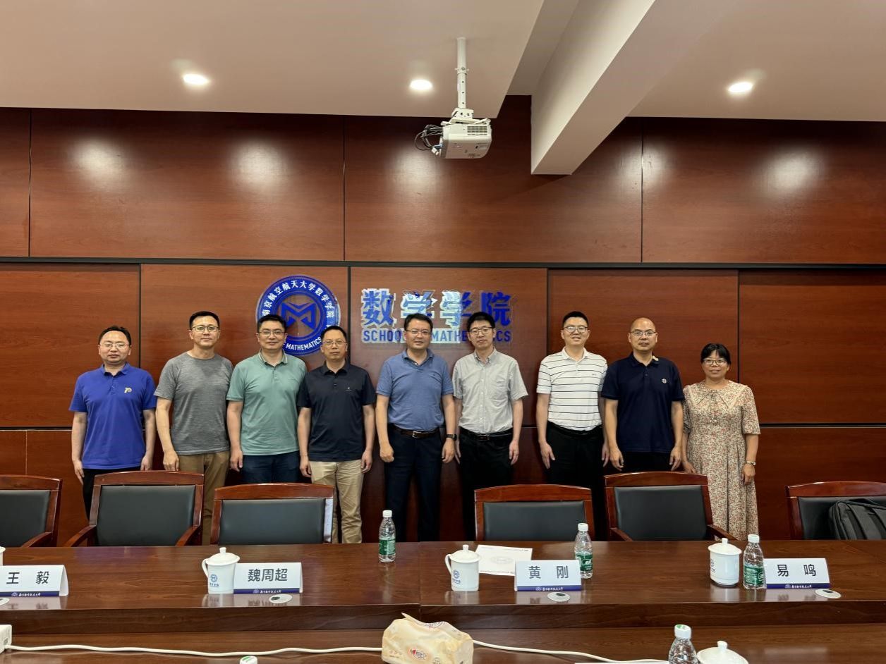 2024年6月11日,嗨皮漫画 院长魏周超率队赴南京航空航天大学数学学院走访调研,就学院本科教育教学审核评估相关工作、大学数学公共课资源建设、数学专业一流课程建设、学位点和学科建设、人才培养方面的先进经验和做法等开展调研。副院长黄刚、数学与应用数学系主任王毅、信息与计算科学系主任易鸣、大学教学部主任郭艳凤参加走访调研。