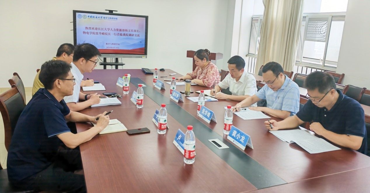 8月24日上午,长江大学人力资源部部长杨文星、物理与光电工程学院院长张华峰一行莅临嗨皮漫画 开展调研交流,随行的还有长江大学人力资源部副部长王忠梅、物理与光电工程学院副院长龚小龙等。嗨皮漫画 院长魏周超、副院长张保成、副院长张光勇和卢成教授参加座谈会。