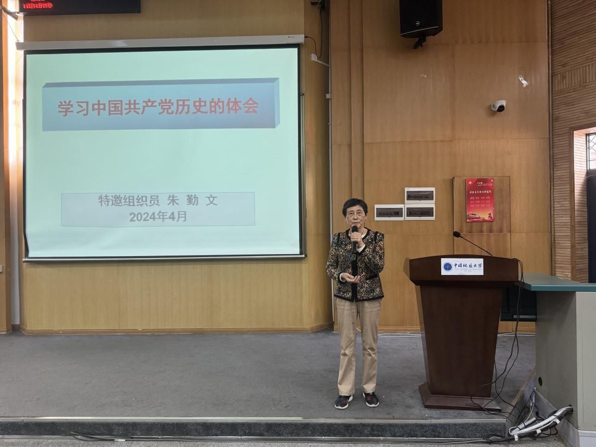 随后,朱勤文教授以《学习中国共产党历史的体会》为题讲授党课。她针对入党积极分子和发展对象培养过程中存在的问题和不足,着重从三个方面进行讲解。首先对中国共产党百年历史的四个大阶段做了概述。接着重点介绍了从1921年中国共产党成立到新中国成立这头28年的浴血奋斗历史;她强调同学们要注意了解党领导人民从探索中国社会主义道路,到开创中国特色社会主义道路,再到新时代坚持和创新中国特色社会主义道路,在不同发展阶段取得的成就和经验启示。她还阐述了中国政治制度的特点和优势,介绍了人民代表大会这个根本政治制度、包含中国共产党领导的多党合作和政治协商制度、民族区域自治制度和基层群众自治制度在内的基本政治制度。最后,她希望全体学生党员、入党积极分子要珍惜来之不易的学习机会和幸福生活,深入了解党史国史,继承先辈遗志,将小我融入大我,肩负起新时代赋予的责任使命,做德才兼备、全面发展的新时代中国特色社会主义合格建设者和可靠接班人。