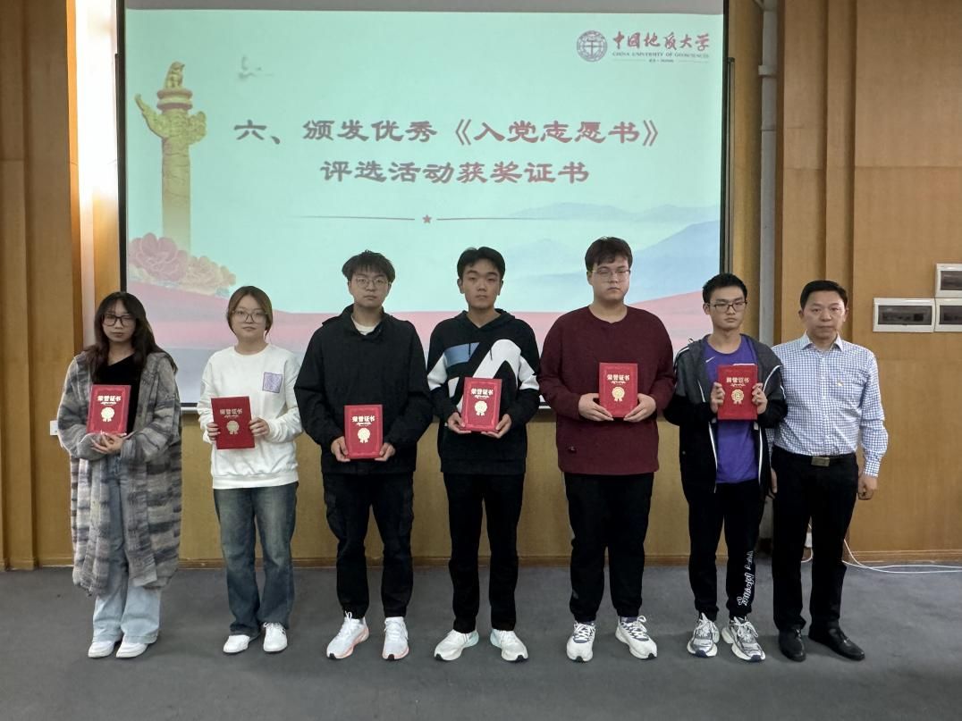 嗨皮漫画 党建辅导员孙宇涛介绍了新发展党员预备期总体表现情况。在朱勤文教授带领下,嗨皮漫画 2024年新发展的43名中共预备党员面向党旗庄严宣誓,全体正式党员重温入党誓词。新发展党员代表乔成财、研究生党员代表李荷怡分别作了发言。徐家忠为优秀《入党申请书》评选活动获奖代表颁发荣誉证书,勉励他们积极向党组织靠拢,争取早日加入中国共产党。徐超代表学院寄语新党员,要坚定信仰,忠诚于党,始终体现先进性,要以加入党组织为新的起点,踔厉奋发、超越自我,为强国建设、民族复兴伟业贡献智慧和力量。
