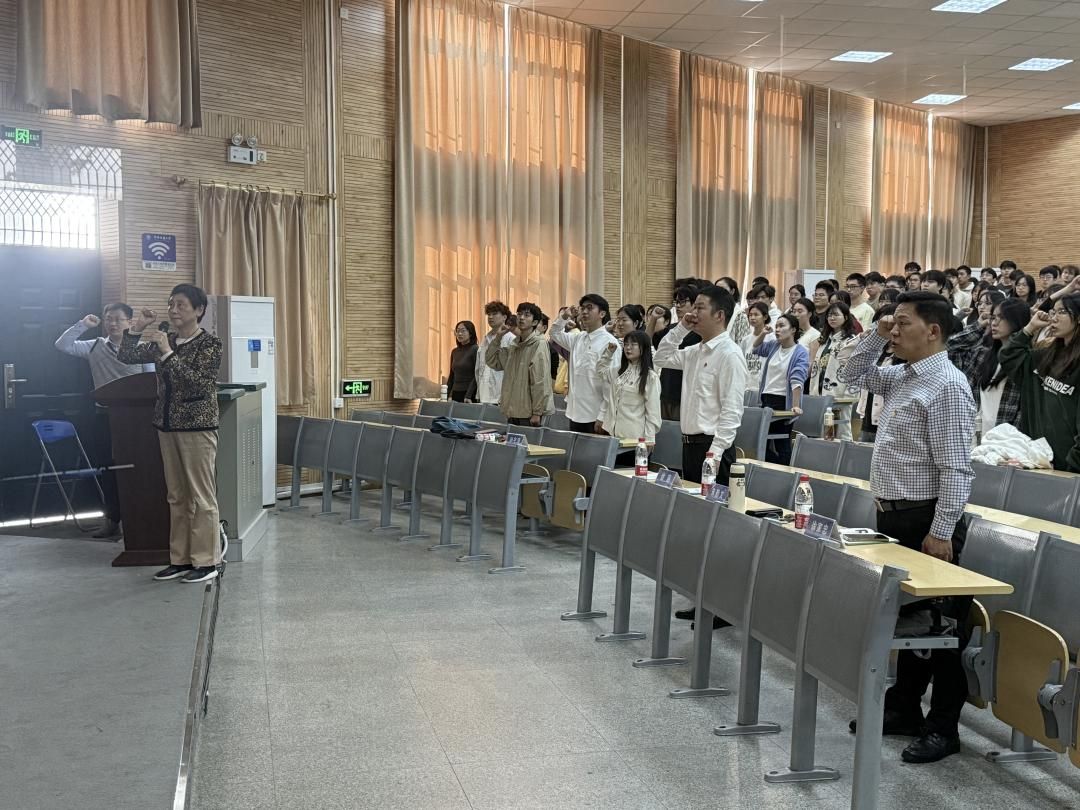 10月29日,嗨皮漫画 中共预备党员入党宣誓仪式暨学生党支部联合“支部主题党日”活动在教三楼109教室举行,学校党委原副书记朱勤文、学校党委组织部副处级专职组织员徐家忠应邀出席。嗨皮漫画 全体学生党员、入党积极分子近400人参会。嗨皮漫画 党委副书记徐超主持会议。