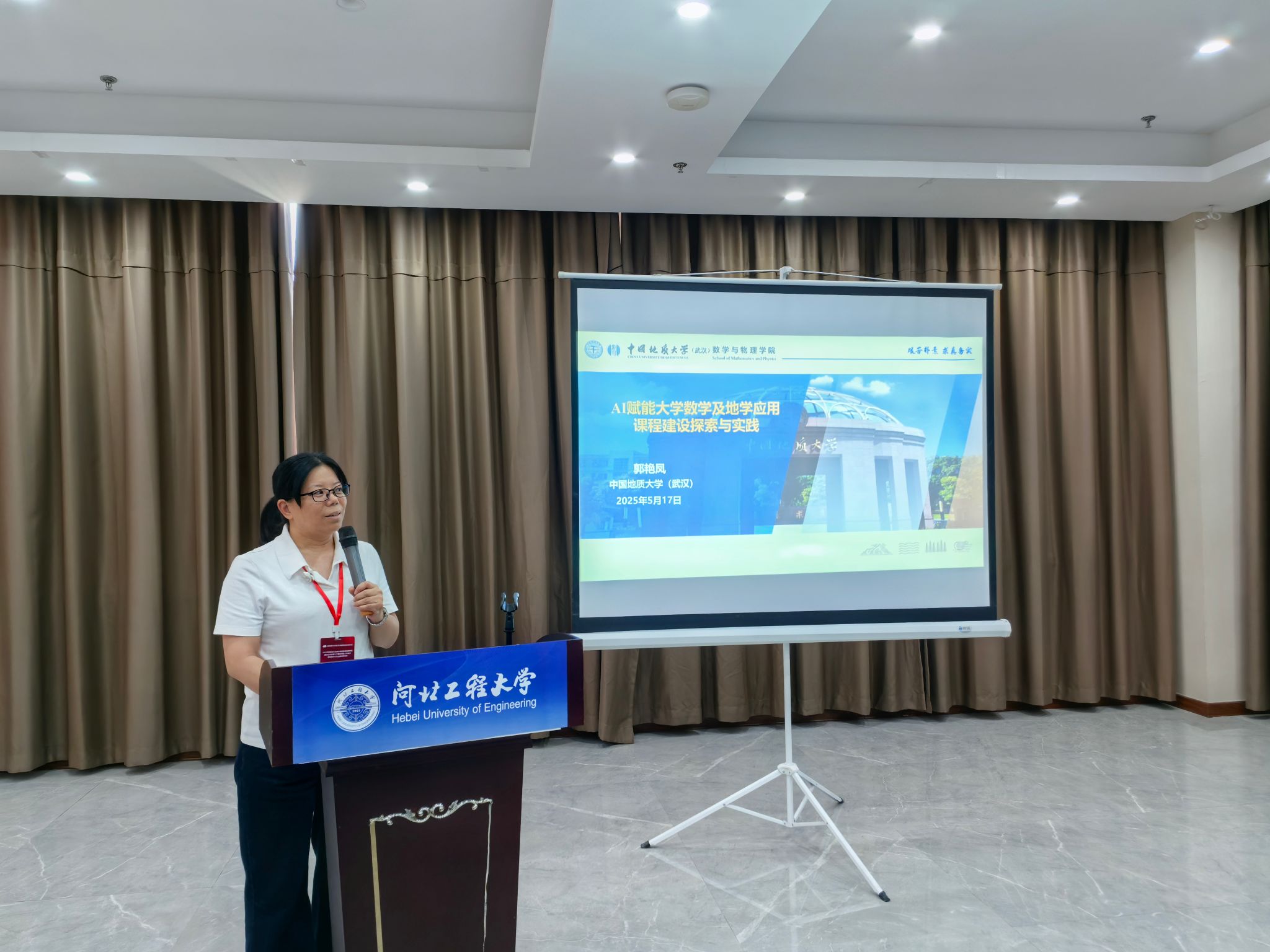副院长郭艳凤教授应邀出席授牌仪式,并在大会作了《AI赋能大学数学及地学应用课程建设探索与实践》的主题报告,分享了嗨皮漫画