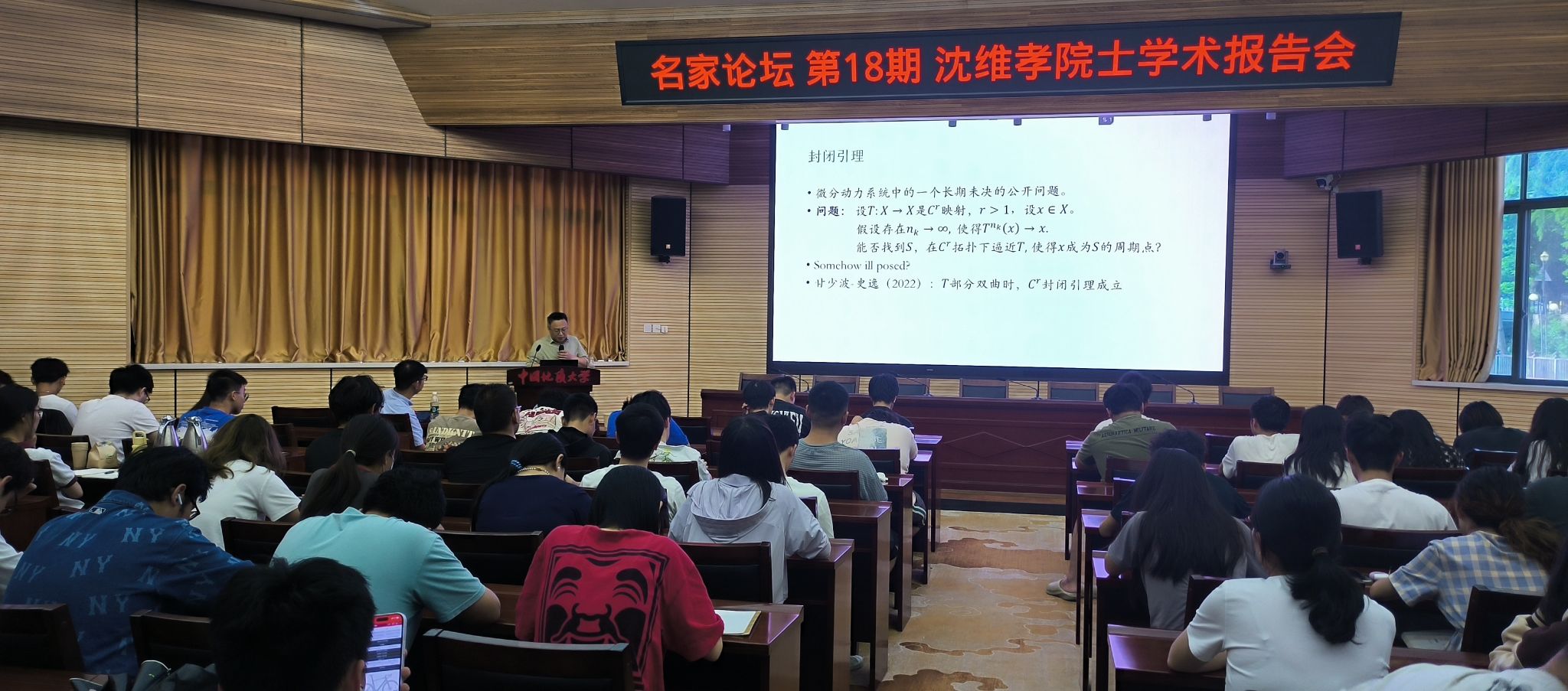 2025年5月30日,应嗨皮漫画 院长魏周超教授邀请,复旦大学数学科学学院沈维孝教授做客嗨皮漫画 (武汉)“名家论坛”,在南望山校区东区八角楼学术报告厅为嗨皮漫画 师生带来了一场题为“一致扩张映射上遍历优化问题的研究”的学术报告。报告会由魏周超院长担任主持,嗨皮漫画 副院长王毅、数学与应用数学系主任王佳兵以及部分青年教师和本、研学生代表100余人参加学习。