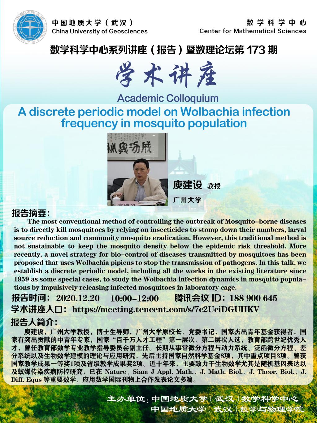 "数理论坛"第173期暨数学科学中心系列讲座(报告):A discrete periodic model on Wolbachia infection frequency in mosquito population