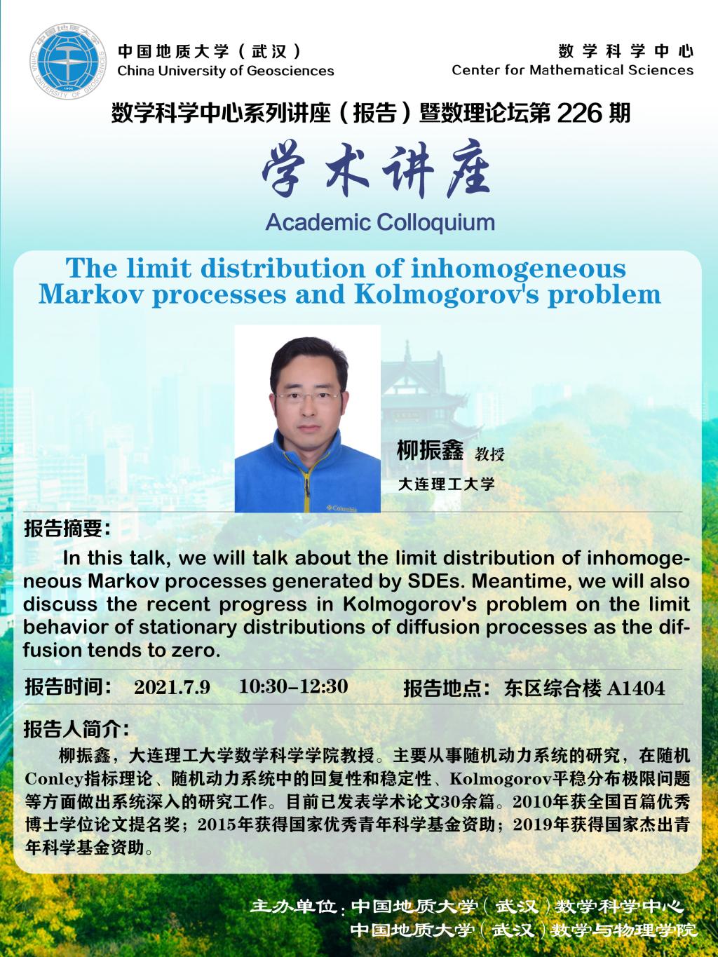 "数理论坛"第226期暨数学科学中心系列讲座(报告):The limit distribution of inhomogeneous Markov processes and Kolmogorov's problem