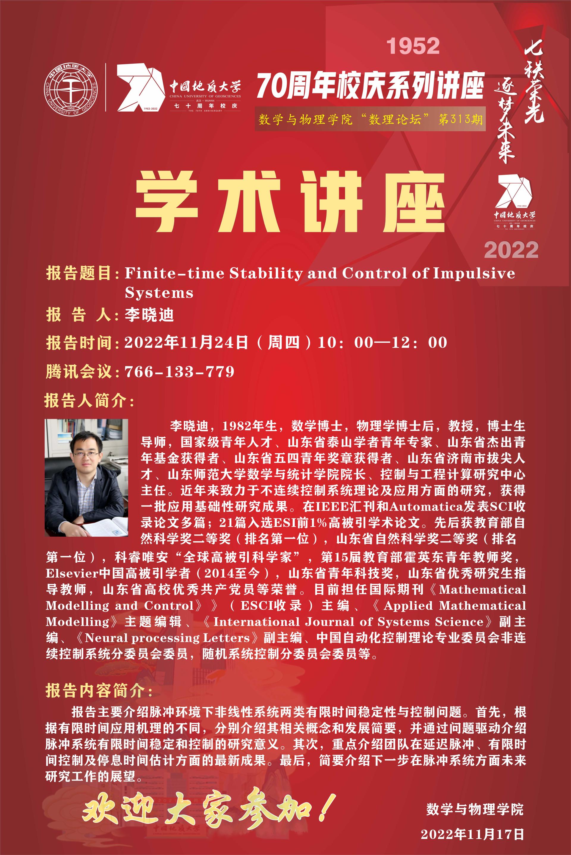 "数理论坛"第313期:Finite-time Stability and Control of Impulsive Systems