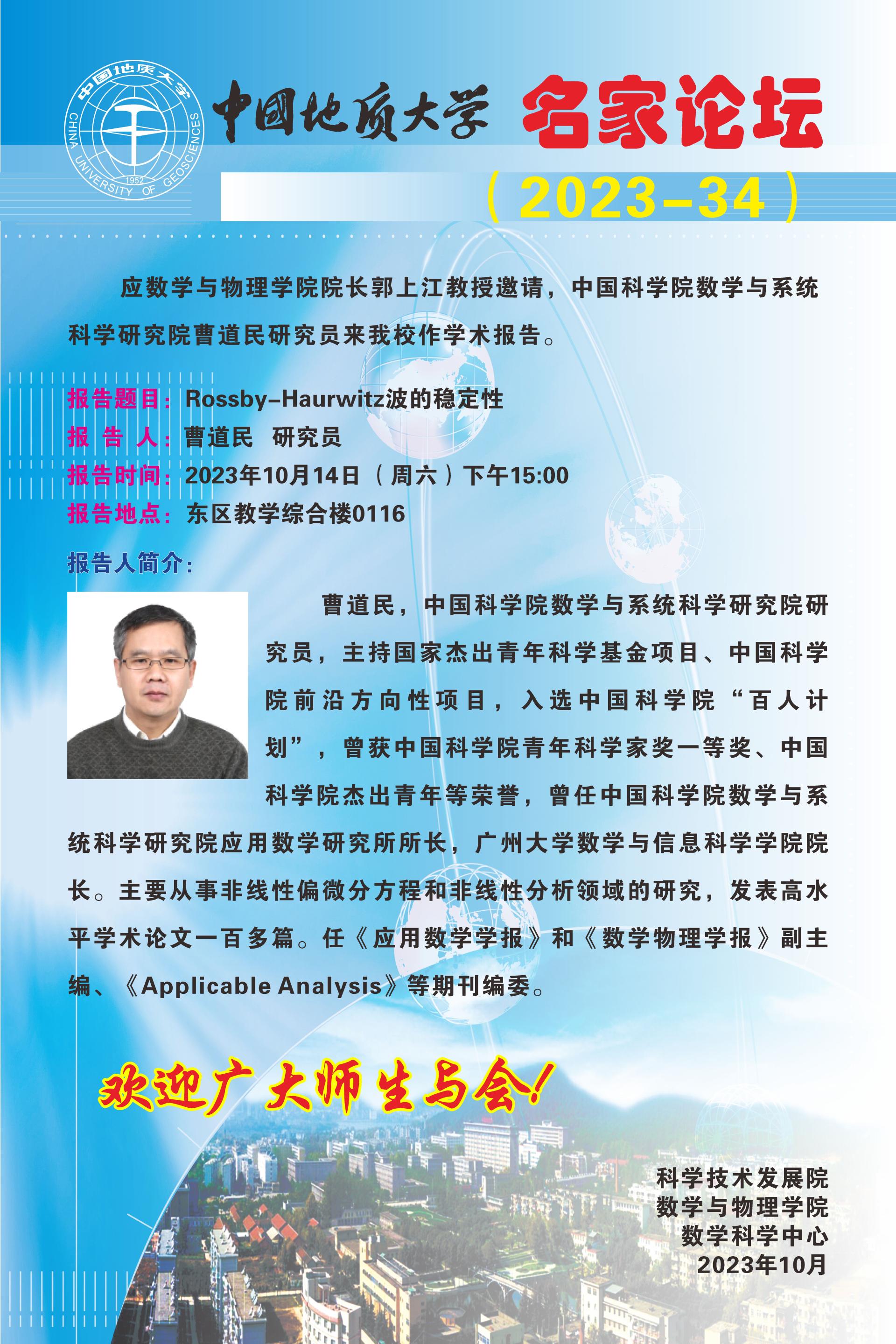 2023年10月14日曹道民研究员学术讲座:Rossby-Haurwitz波的稳定性