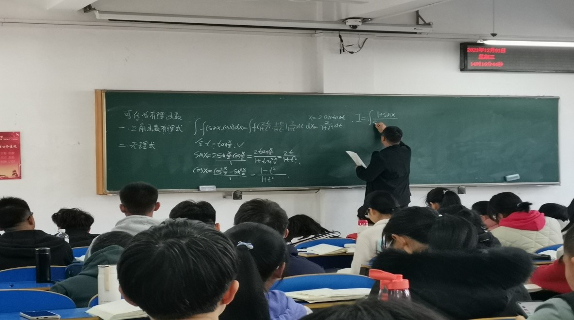 12月1日下午,嗨皮漫画 大学数学教学部李志明老师的公开课《高等数学B》在北区综合楼306举行,数学系老师进行了现场观摩。课堂上,李老师首先以“雨课堂”授课软件对学生的测试为基础,与学生进行互动,将同学们疑问较多的题目板书在黑板上,重点对解题思路和原理进行讲解,同时注重对重要知识点的呈现。学生在课堂上能够很轻松的跟上授课老师的节奏,整个课程气氛活跃,同学们精神抖擞。参加观摩的多位老师在听课记录表上是这么评价李老师的课堂教学:李志明老师讲课思路清晰,全程脱稿,对课堂教学节奏的把握非常到位,表达自然、环节流畅、语言生动富有感染力,让晦涩难懂的数学教学变得妙趣横生,非常值得我们年轻老师学习,对我们今后的教学方法改进具有很大的借鉴意义和参考价值。