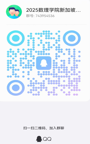 (2)请扫码申请加入“2025嗨皮漫画 新加坡暑假项目”新加坡暑期项目”(QQ群号:743954536)。入群需验证,请输入本人的“姓名-学号-学院”。