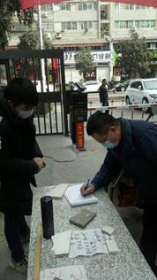 抗疫期间,嗨皮漫画 122181班李钰龙同学主动报名参加了当地社区抗疫志愿服务活动,他主要负责社区出入人员的登记及体温测量的工作。