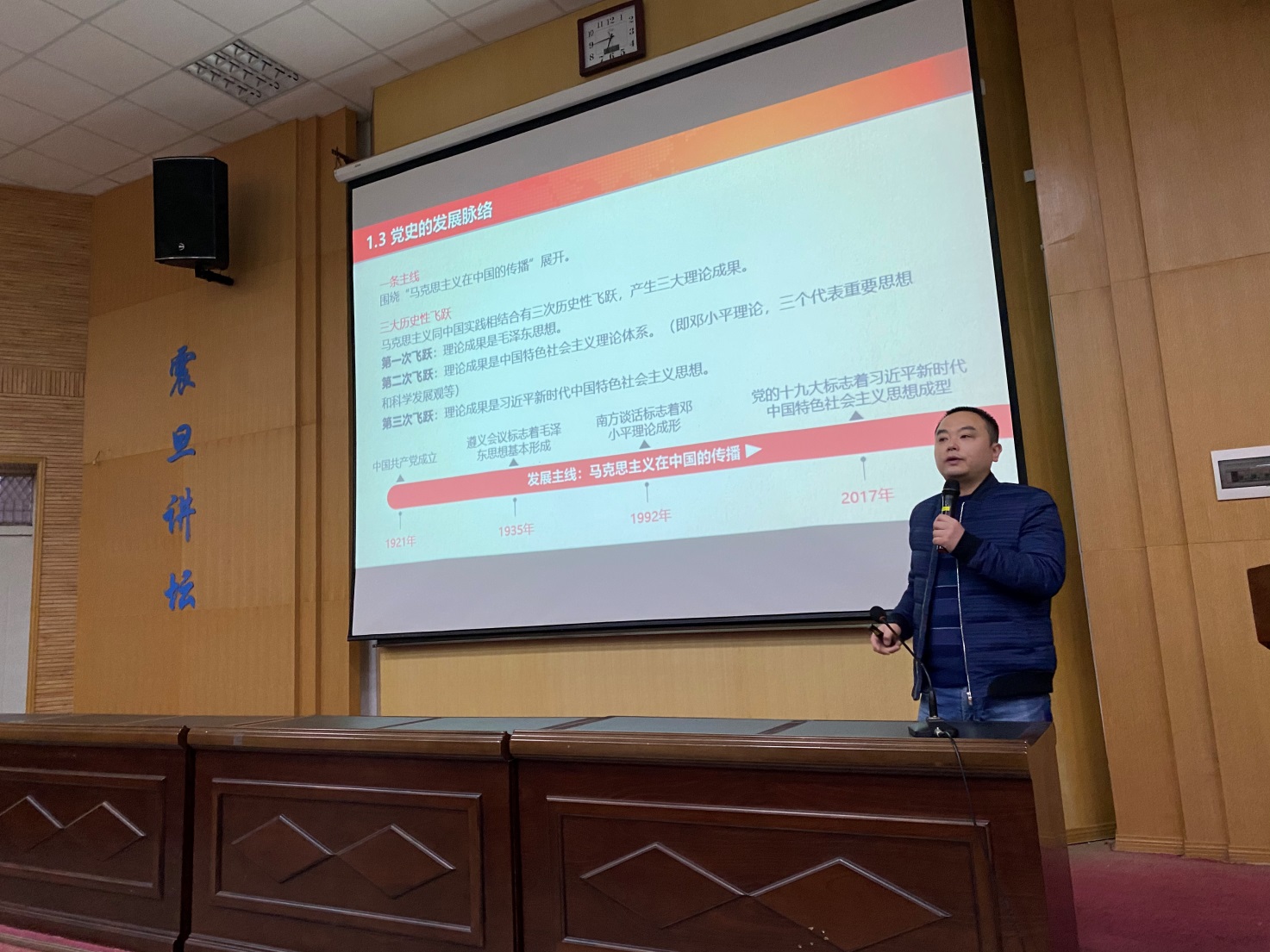 会议的第二项是由学工部思政办主任徐伟老师作入党启蒙教育讲座,徐老师从学习党史的意义及发展脉络、新民主主义革命时期、社会主义革命和建设时期以及改革开放和社会主义现代化建设时期四个方面进行了阐述,使同学们更加了解了中国共产党的奋斗历程以及今天幸福生活的来之不易,不少同学表达了向党组织积极靠拢的意愿。