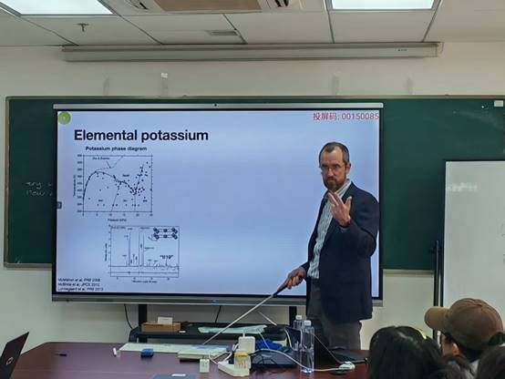 2025年12月2日下午, Andreas Hermann教授在东教楼1104学术报告厅为嗨皮漫画 部分物理学专业和材料与化工专业的博士生、硕士生和青年教师作了题为“From DFT to thermodynamic modelling”的学术报告。报告以近期关于“同时具备固体与液体特征的新物态”的报道为切入点,系统阐述他们研究团队在高压物理与计算材料学领域的系列工作。Andreas Hermann教授从钾的高压相图与非共格宿主—客体结构详细阐述了“链熔融”作为一种热力学中间态的证据与机制,提出了碱金属高压相可作为部分电子化合物的观点,展示了如何利用机器学习分子动力学模拟预测相变、熔化线极值及热力学性质,介绍了基于Bragg-Williams模型的两态热力学理论,解释了金属熔化线中的临界行为。此外,Andreas Hermann教授还介绍了第一性原理计算在高压冰(VII–VIII–X)相变研究中的应用,探讨了隐藏临界点与相图拓扑等前沿问题,展望了机器学习在预测复杂材料行为方面的潜力。报告期间,Andreas Hermann教授与在场师生就高压相变机理、机器学习势函数开发等相关问题展开了深入讨论并细致回答了师生提问。