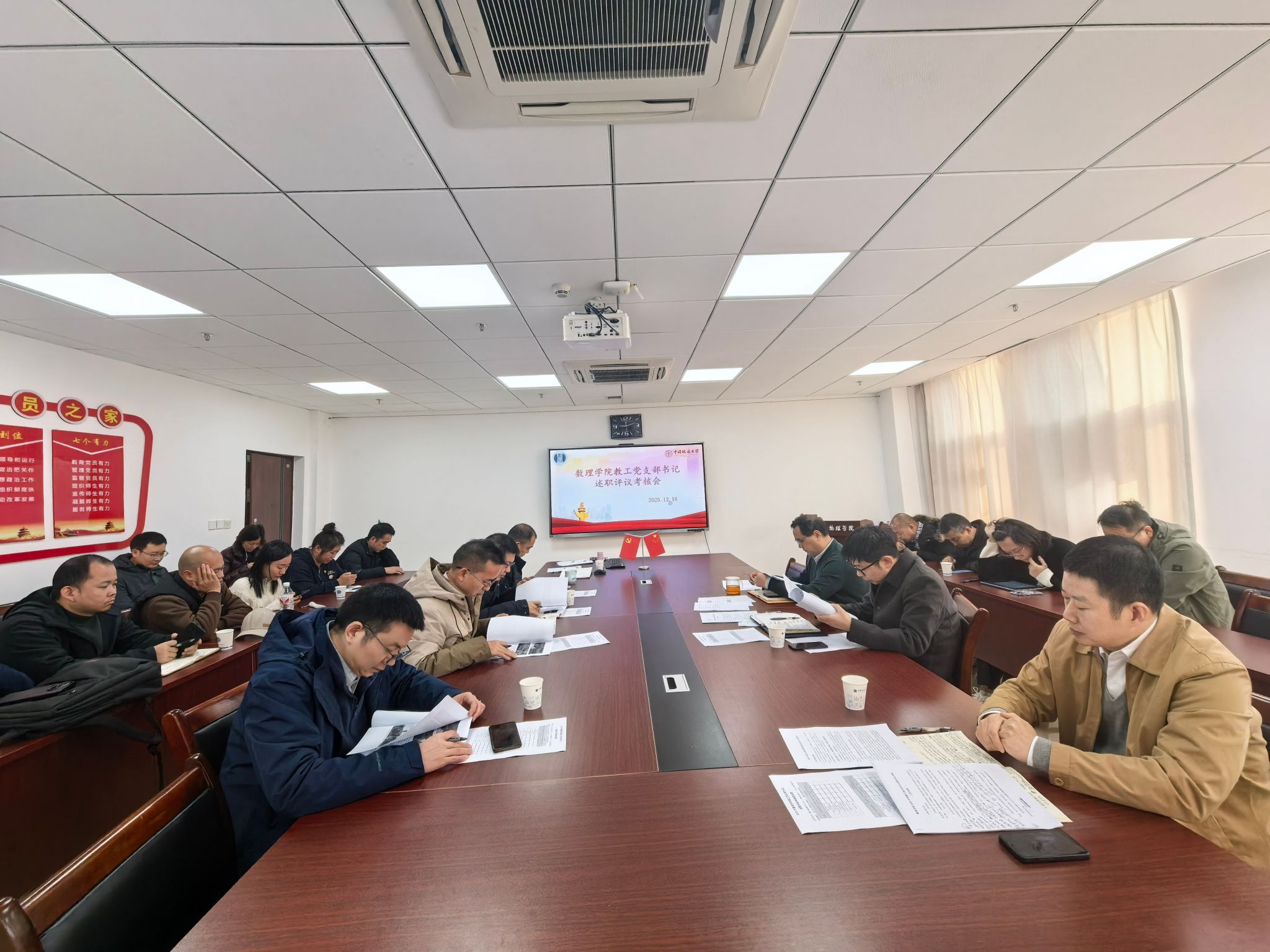 院党委书记张基得作总结讲话。他表示,一年来,各党支部书记认真履行党支部工作第一责任人职责,突出学习贯彻习近平新时代中国特色社会主义思想,巩固拓展主题教育成果。扎实开展党纪学习教育,在党风廉政、意识形态、作风建设等方面取得明显成效。同时,他就进一步抓好党支部党建工作,提出两点希望和要求。一是加强分管领导与对应党支部的联系,在一融三高方面发挥作用。各支部活动从被动转为主动,党费使用要建立台账,支部凝聚力与文化建设需加强,可以开展支部活动比赛,加强支部特色活动建设。二是要攻艰克难,各党支部书记要当好“领头雁”,在十四五、十五五、年终总结、考核考聘方面做好沟通的桥梁和纽带,物理党支部要积极推进物理一级博士点申报工作,数学党支部在中外合作办学方面要做好党建引领和规划,信息与计算科学党支部要积极推进专业优化升级工作,大物中心和大数党支部要发挥好公共基础可深化教学改革凝心聚力、攻坚克难引领作用,院直党支部要增加凝聚力和协调力保质保量做好师生服务。